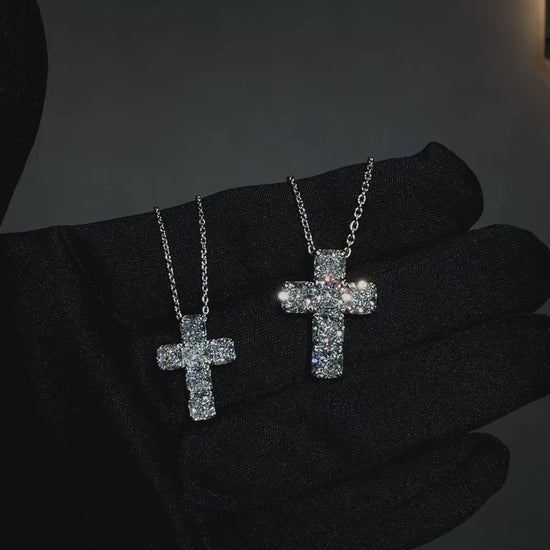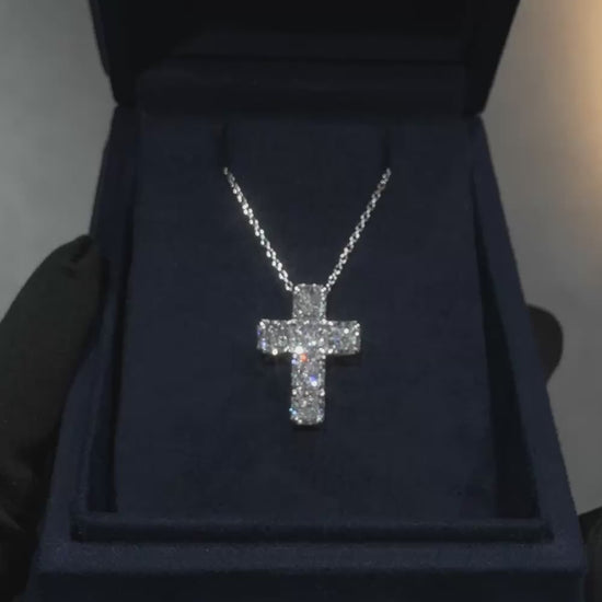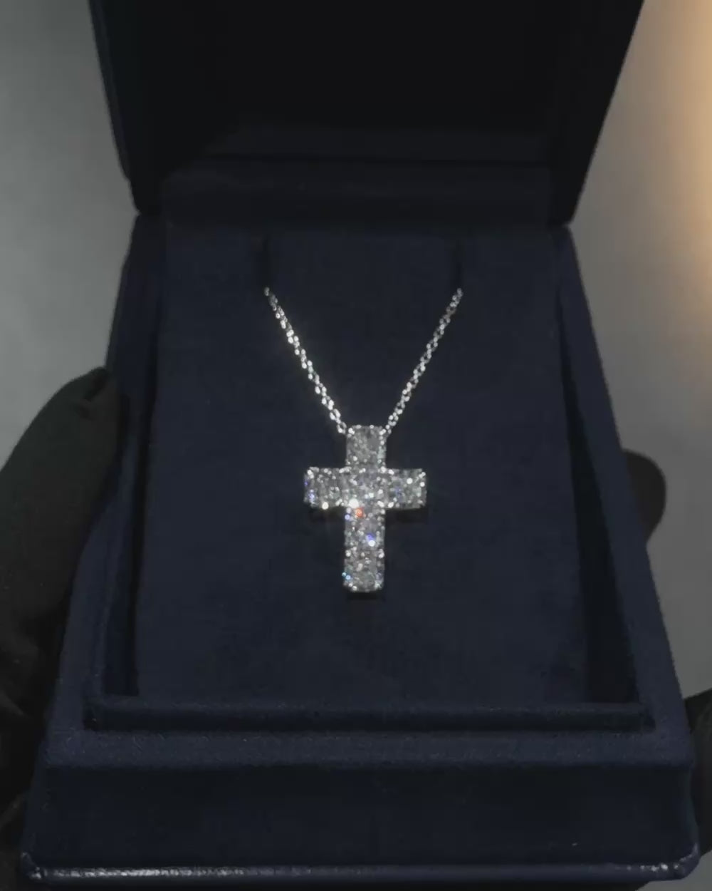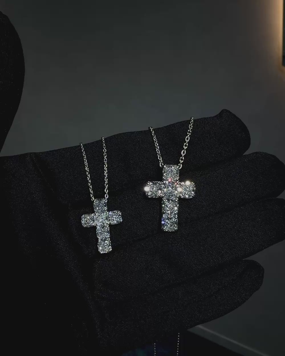 A timeless pendant featuring six cushion-cut diamonds arranged in a cross design. Known for their delicate, ice-like sparkle, the cushion cuts create a refined and radiant presence.