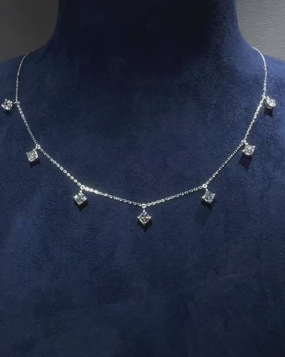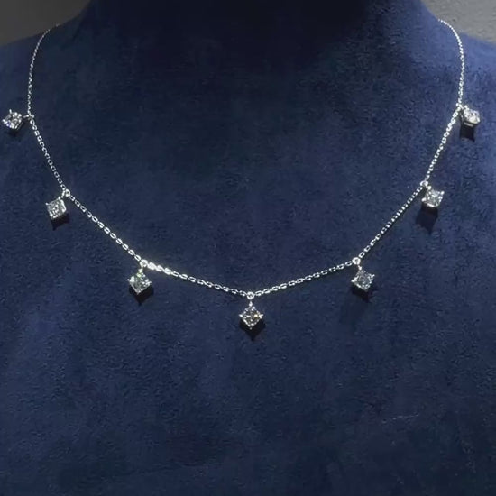 This station necklace is set with 5 H& diamonds of 0.3ct for a total of 1.5ct. The design is simple yet sophisticated. The diamonds are evenly placed and sparkle beautifully along the delicate chain. It is a perfect gift for a special occasion or as a reward for yourself.