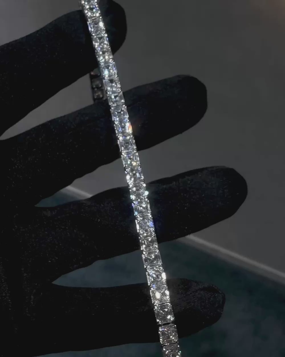 1石0.6ctのアッシャーカットを贅沢に使用したブレスレット。アッシャーカットのロイヤルな深みのある輝きが楽しめる逸品です。D~Fcolor,VVS,VS1,IGI鑑定書は付属されません。18cm 22ct お客様のご希望に合わせて、カスタムオーダーも承っております。まずはお気軽にお問い合わせください。