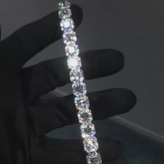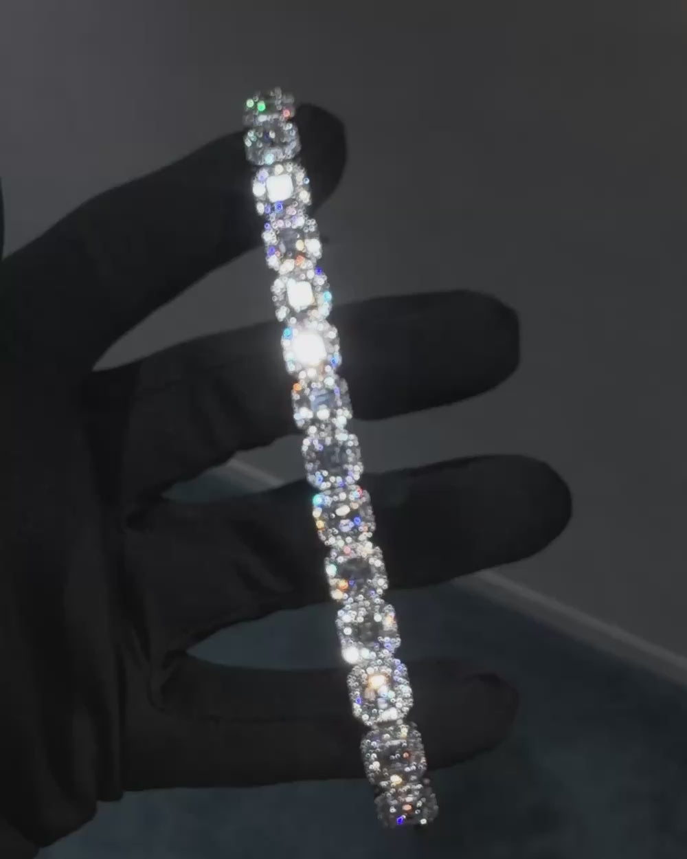 1石0.45ctのアッシャーカットをH&Aメレダイヤで贅沢に取り囲んだブレスレット。アッシャーカットのロイヤルな深みのある輝きとH&Aの力強い輝きを楽しめる逸品です。D~Fcolor,VVS,VS1,IGI鑑定書は付属されません。お客様のご希望に合わせて、カスタムオーダーも承っております。まずはお気軽にお問い合わせください。