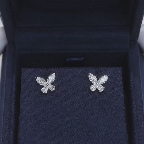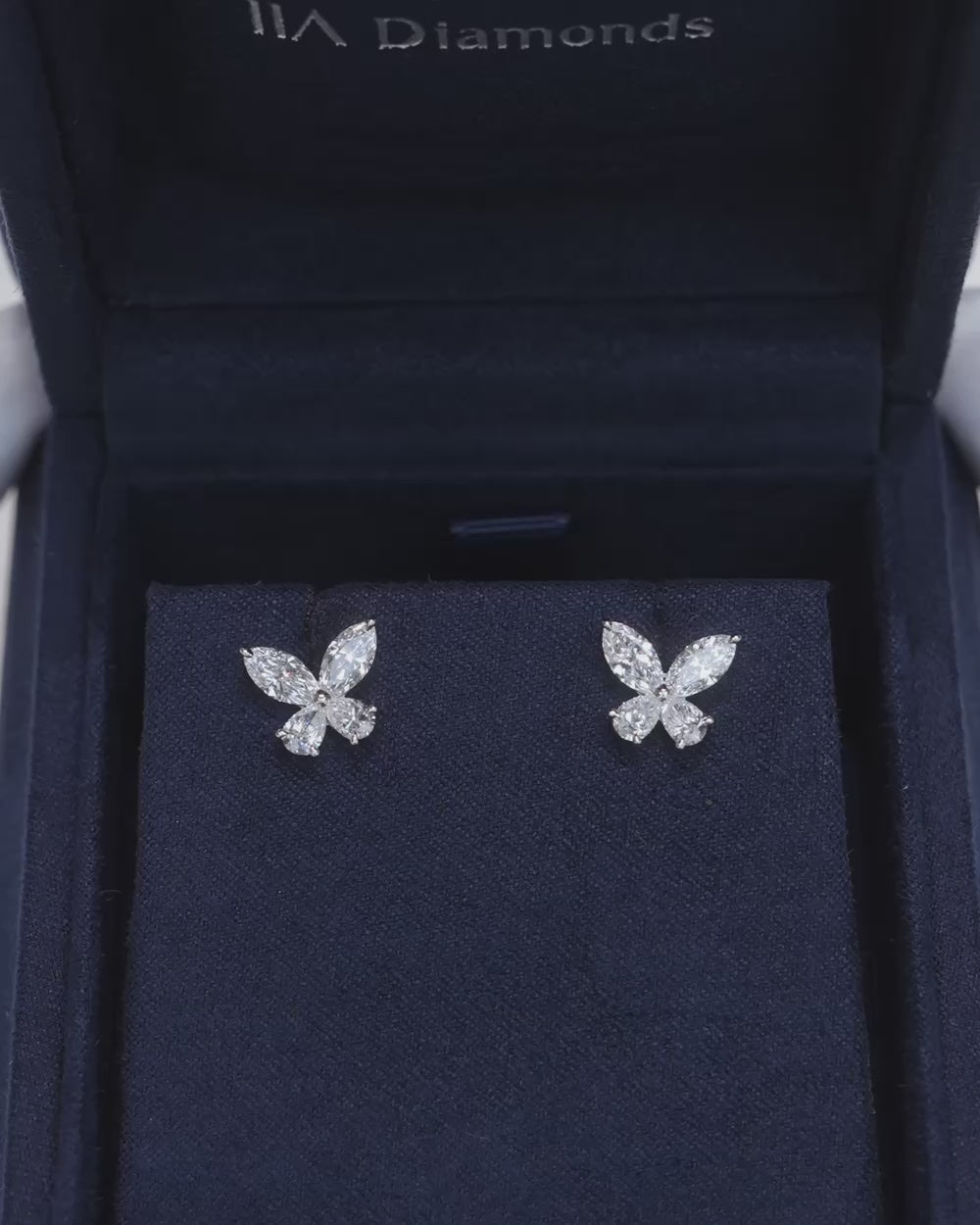 蝶々の形をペアシェイプとマーキスでデザインしたスタッドピアス。今にも羽ばたきそうな羽の動きを表しハイグレードラボダイヤをセットしています。D~Fcolor,VVS,VS1,鑑定書は付属されません。Lab Grown Diamond制作期間1ヶ月半