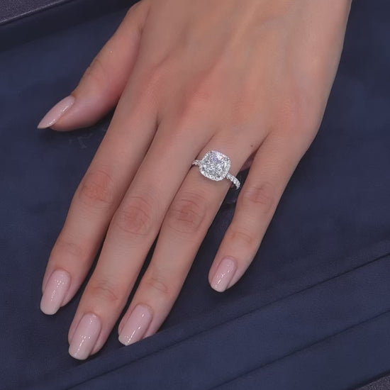 クッションカットをダイヤで取り巻き、アームから台座まで全てパヴェダイヤセッティングを施した贅沢なリングです。お好みの地金をお選びいただけます。4ct以上のサイズはお問い合わせください。D,Ecolor,VS1,IGI鑑定書付属Lab Grown Diamond制作期間制作期間2ヶ月