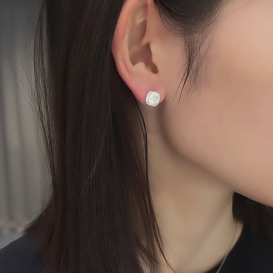 クッションカットをメレダイヤで取り巻いた華やかなスタッドピアス。クッションカットははクラッシュアイスのような繊細で細かな輝き、周囲はラウンドブリリアントの輝きと光のコントラストをお楽しみ頂けます。Dcolor,VS1,鑑定書付属お客様のご希望に合わせて、カスタムオーダーも承っております。まずはお気軽にお問い合わせください。