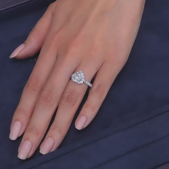 ハートシェイプを大きめのメレダイヤで取り巻いたHaloデザインにパヴェバンド合わせた豪華なリング。繊細かつエレガントなハートシェイプはどんな装いにもピタリとマッチします。