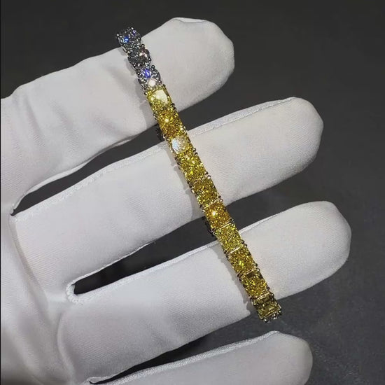 1ctのビビッドイエロー・ラディアントカットダイヤモンドと、0.5ctのトリプルエクセレントカット・ラウンドブリリアントを組み合わせた、華麗で存在感のあるブレスレット。ラディアントカットの力強く鮮やかな輝きと、ラウンドブリリアントの完璧な煌めきがリズミカルに並び、手元に立体的な光のハーモニーを生み出します。Total 20ct価格はお問い合わせください。Lab Grown Diamond制作期間2ヶ月