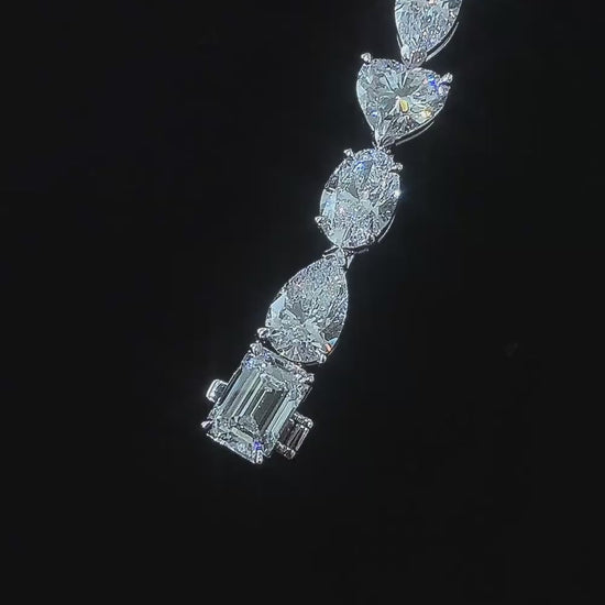 オーバル、エメラルド、ペアシェイプ、マーキス、ハートのファンシーカットを使用したマルチブレスレット。異なる形状のダイヤモンドが連なることで、光のコントラストを楽しめます。1石 1ct,D,Ecolor,VVSお客様のご希望に合わせて、カスタムオーダーも承っております。まずはお気軽にお問い合わせください。