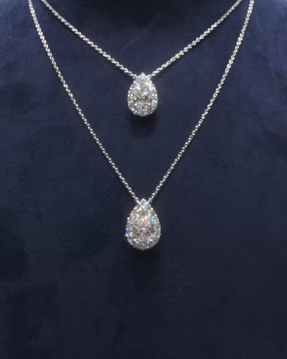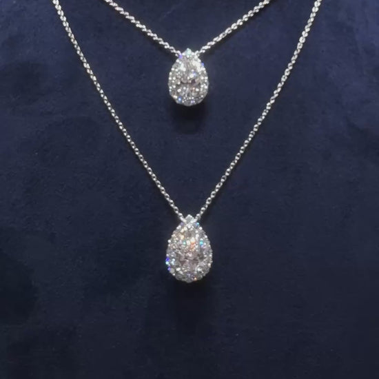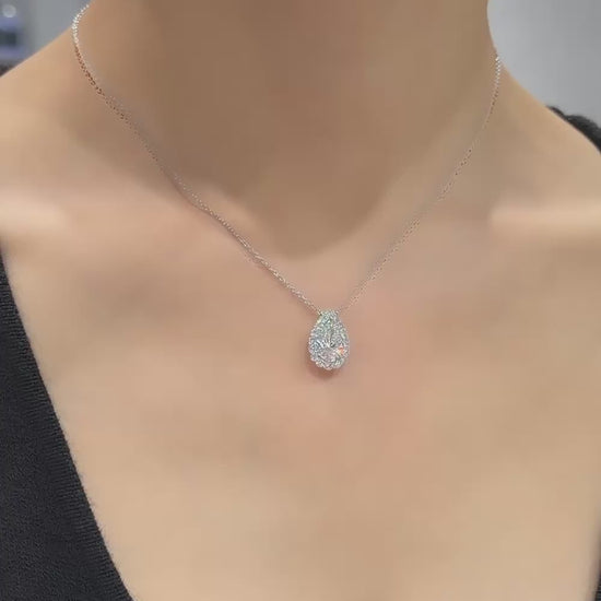 中央にエレガントなペアシェイプのダイヤモンドをセットし、繊細に取り巻くハローデザインで構成されています。ペアシェイプダイヤモンドはその涙滴の形が光を美しく捉え、柔らかく洗練された輝きを放ち、華やかな印象を生み出します。Dcolor,VS1,IGI鑑定書付属お客様のご希望に合わせて、カスタムオーダーも承っております。まずはお気軽にお問い合わせください。