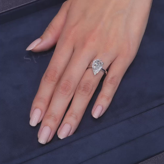 ペアシェイプダイヤモンドをセットしたシンプルでクラシックな美しさのリング。ペアシェイプ本来の美しい曲線を楽しめるリング。光がダイヤモンドのすべての角度から入り込むオリジナルの台座です。