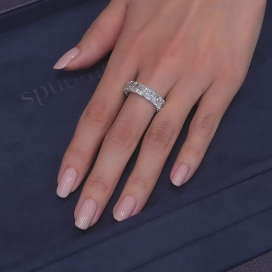 ラディアントカットは多面的なカットで細かく強い光輝きが特徴です。どこから見ても絶え間なく輝き続けるデザインは、日常のさりげない瞬間から特別な場面まで常にあなたを手元を華やかに彩ります。