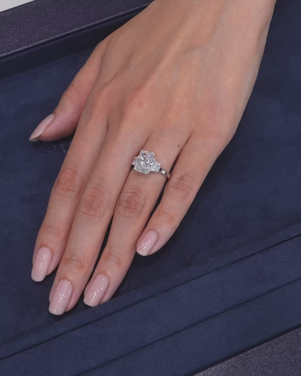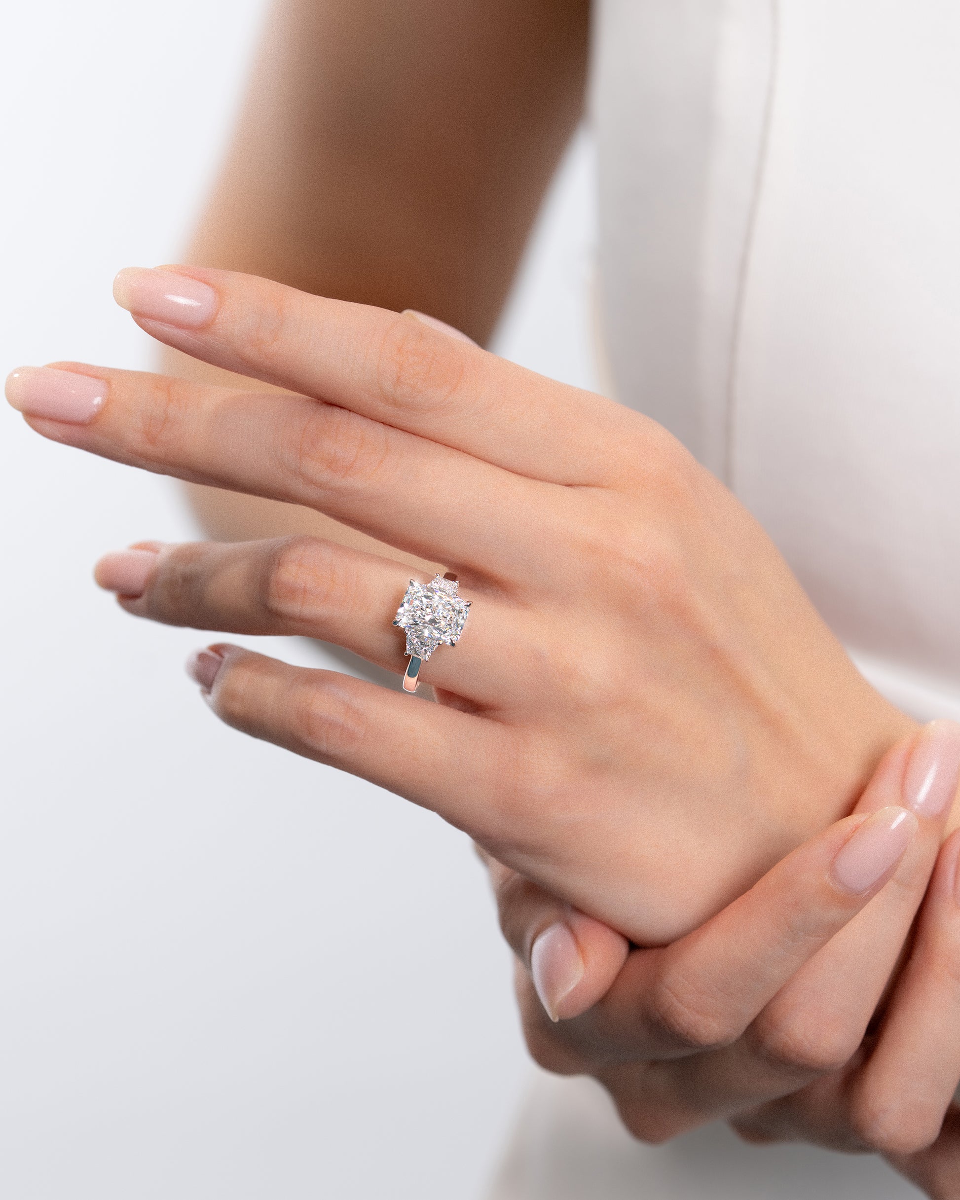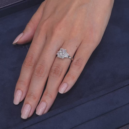 ラディアントカットのサイドにトラペゾイトのダイヤモンドを配置。ラディアントの強い輝きとトラペゾイトの輝きが重なりリング全体が力強く輝きます。4ct以上のサイズはお問い合わせください。Dcolor,VS1,IGI鑑定書付属Lab Grown Diamond制作期間2ヶ月